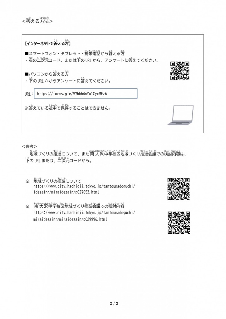 南大沢中学校区に在住または関わりのある方々へのアンケートとなっております。ご注意ください。