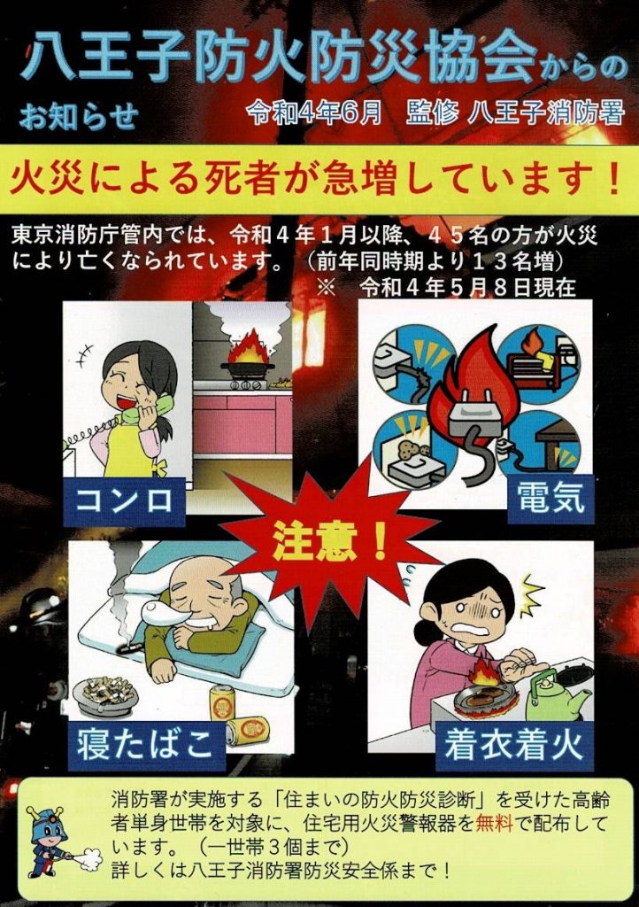 7/1 八王子防火防災協会主催 地域と防災と音楽のつどい(八王子防火防災協会) 2022 6/17 お知らせ 回覧 2022年6月17日 お知らせ 回覧 よかったらシェアしてね! URLをコピーしました! URLをコピーしました! 8/24,25 南大沢文化会館バックステージツアー案内(南大沢文化会館) 8/21(日) 市長と語る「私が行っている八王子の地域づくり」ご案内 関連記事 4/18(土)19:00~ 定期総会開催のお知らせ(南大沢町会) 2026年4月12日 七頭舞を踊る会 会員募集のお知らせ(七頭舞を踊る会) 2026年4月12日 【注意喚起!!】侵入盗(空き巣)事件が発生しています(南大沢町会) 2026年4月5日 民生委員・児童委員が訪問調査を実施します(八王子市) 2026年4月5日 [報告]柚子の実会×おひさま広場コラボイベント『じいじばあばと昔あそび』を開催(南大沢町会) 2026年4月3日 3/28(土) 10:00~16:00 [観覧歓迎]銭湯絵師・中島盛夫さんと一緒に富士山を描こう!(joynみなみおおさわ、学生団体Bloomy)※実施レポート追記(4/3) 2026年3月27日 三井アウトレットパーク南大沢B街区建替え工事予定のお知らせ(三井不動産株式会社) 2026年3月26日 [町会員情報]令和8年度 会館利用スケジュールを掲載しました。(南大沢町会) 2026年3月26日