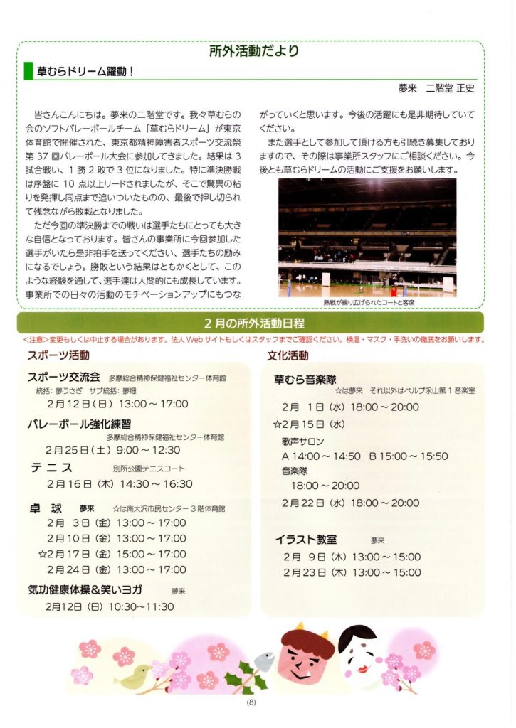 草むら通信 Vol.298 2023.2号 2023 2/13 お知らせ 回覧 2023年2月13日 お知らせ 回覧 よかったらシェアしてね! URLをコピーしました! URLをコピーしました! 2/25 地域共生のまちづくり推進フォーラム「わたしたちが いま できること 8050?ひきこもり?」 3/4(土) 9:15~クリーンデーのお知らせ 関連記事 4/18(土)19:00~ 定期総会開催のお知らせ(南大沢町会) 2026年4月12日 七頭舞を踊る会 会員募集のお知らせ(七頭舞を踊る会) 2026年4月12日 【注意喚起!!】侵入盗(空き巣)事件が発生しています(南大沢町会) 2026年4月5日 民生委員・児童委員が訪問調査を実施します(八王子市) 2026年4月5日 [報告]柚子の実会×おひさま広場コラボイベント『じいじばあばと昔あそび』を開催(南大沢町会) 2026年4月3日 3/28(土) 10:00~16:00 [観覧歓迎]銭湯絵師・中島盛夫さんと一緒に富士山を描こう!(joynみなみおおさわ、学生団体Bloomy)※実施レポート追記(4/3) 2026年3月27日 三井アウトレットパーク南大沢B街区建替え工事予定のお知らせ(三井不動産株式会社) 2026年3月26日 [町会員情報]令和8年度 会館利用スケジュールを掲載しました。(南大沢町会) 2026年3月26日
