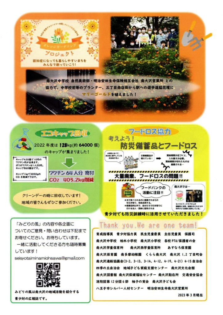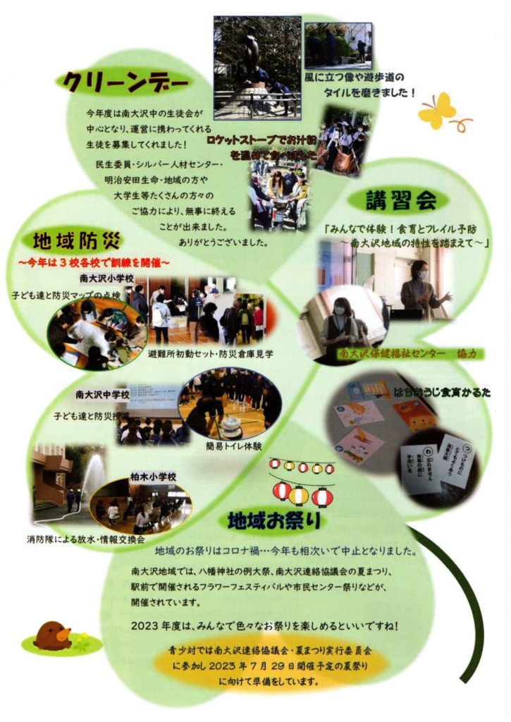 みどりの風 2023.3.15(八王子市青少年対策南大沢地区委員会) 2023 4/08 回覧 2023年4月8日 回覧 よかったらシェアしてね! URLをコピーしました! URLをコピーしました! 自防連だより 第53号(八王子市自主防災団体連絡会) 4/29,30 フラワーフェスティバル由木 開催のご案内 関連記事 【3/28追加開催】3/26,28 不登校の子供たちのための体験型学校「高尾山学園」分校設置説明会開催案内(八王子市教育委員会) 2026年3月10日 3/28~4/5 富士見台公園 桜まつり(西由木コミュニティバーク) 2026年3月10日 第28回フラワーフェスティバル由木 ハンギングバスケット講習会 参加者募集(フラワーフェスティバル由木祭典委員会) 2026年3月10日 第61号 自防連だより(八王子市自主防災団体連絡協議会) 2026年3月10日 第35号 由木地区情報紙(由木地区町会自治会連合会) 2026年1月6日 12/20(土) クリーンデー(八王子市青少年対策南大沢地区委員会) 2025年11月29日 シルバーいきいき新聞 2025年度 保存版(八王子市高齢者あんしん相談センター南大沢) 2025年11月3日 11/24(月・祝) いきいきフェスタ(八王子市地域包括支援センター南大沢) 2025年11月3日