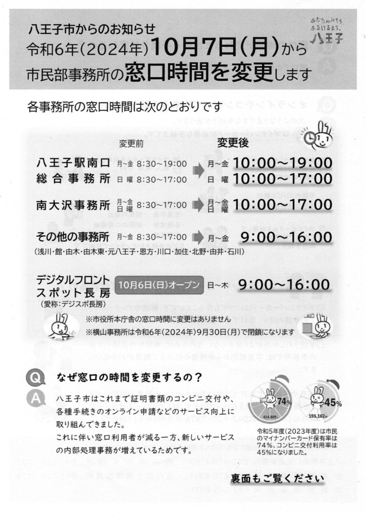 10/7~ 窓口時間変更のお知らせ(八王子市市民部) 2024 9/15 お知らせ 回覧 2024年9月15日 お知らせ 回覧 よかったらシェアしてね! URLをコピーしました! URLをコピーしました! 令和6年 南大沢八幡神社 夏まつり(例大祭) 高齢者あんしん相談センターからのお知らせ(八王子市福祉部) 関連記事 4/18(土)19:00~ 定期総会開催のお知らせ(南大沢町会) 2026年4月12日 七頭舞を踊る会 会員募集のお知らせ(七頭舞を踊る会) 2026年4月12日 【注意喚起!!】侵入盗(空き巣)事件が発生しています(南大沢町会) 2026年4月5日 民生委員・児童委員が訪問調査を実施します(八王子市) 2026年4月5日 [報告]柚子の実会×おひさま広場コラボイベント『じいじばあばと昔あそび』を開催(南大沢町会) 2026年4月3日 3/28(土) 10:00~16:00 [観覧歓迎]銭湯絵師・中島盛夫さんと一緒に富士山を描こう!(joynみなみおおさわ、学生団体Bloomy)※実施レポート追記(4/3) 2026年3月27日 三井アウトレットパーク南大沢B街区建替え工事予定のお知らせ(三井不動産株式会社) 2026年3月26日 [町会員情報]令和8年度 会館利用スケジュールを掲載しました。(南大沢町会) 2026年3月26日