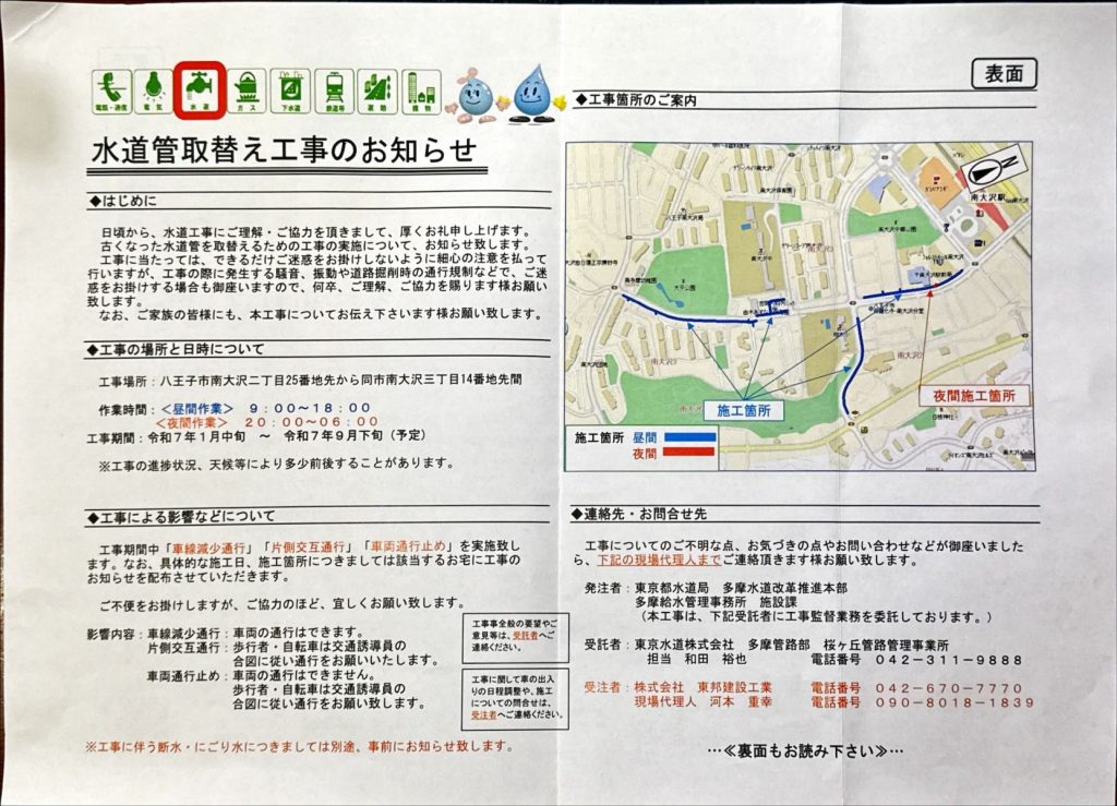 R7/1中旬~9下旬 水道管取替え工事のお知らせ(東京都水道局)
