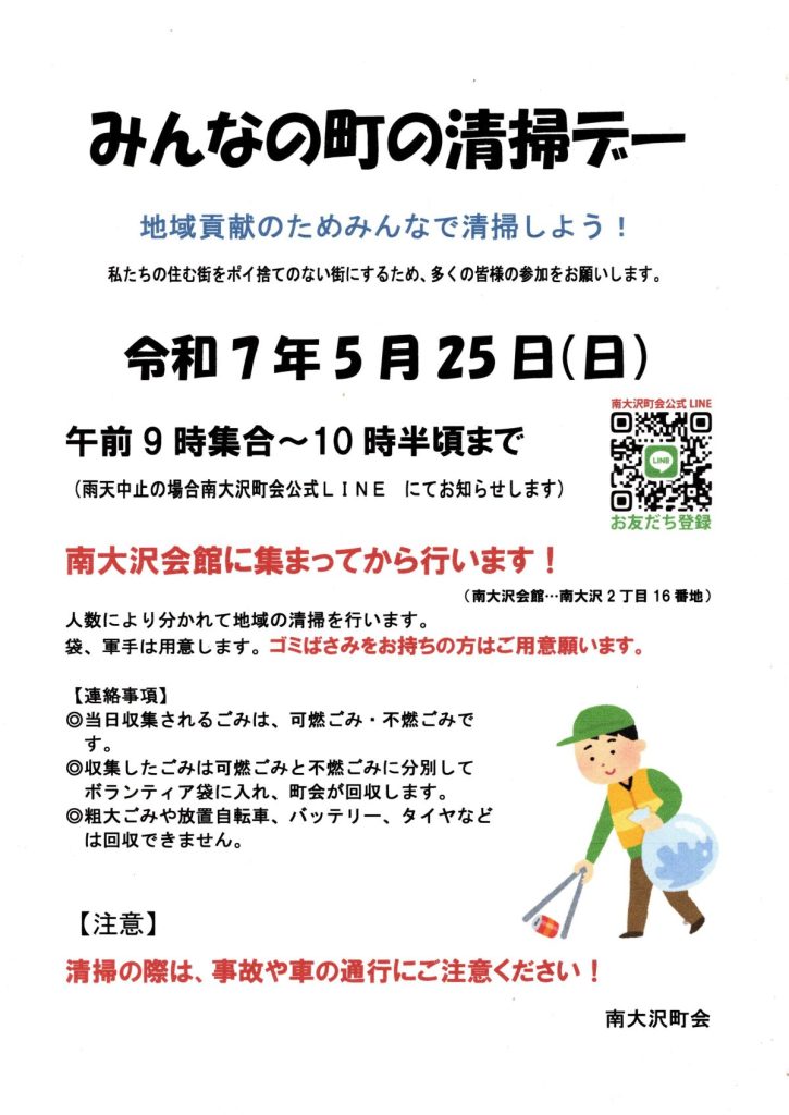 5/25(日) みんなの町の清掃デー(南大沢町会) 2025 5/06 お知らせ 回覧 2025年5月6日 お知らせ 回覧 よかったらシェアしてね! URLをコピーしました! URLをコピーしました! 住まいの防犯対策 緊急補助金のご案内(八王子市) [終了]6/1(日) 19:00~ 第4回ガーデンシアターのご案内(南大沢町会) 関連記事 4/18(土)19:00~ 定期総会開催のお知らせ(南大沢町会) 2026年4月12日 七頭舞を踊る会 会員募集のお知らせ(七頭舞を踊る会) 2026年4月12日 【注意喚起!!】侵入盗(空き巣)事件が発生しています(南大沢町会) 2026年4月5日 民生委員・児童委員が訪問調査を実施します(八王子市) 2026年4月5日 [報告]柚子の実会×おひさま広場コラボイベント『じいじばあばと昔あそび』を開催(南大沢町会) 2026年4月3日 3/28(土) 10:00~16:00 [観覧歓迎]銭湯絵師・中島盛夫さんと一緒に富士山を描こう!(joynみなみおおさわ、学生団体Bloomy)※実施レポート追記(4/3) 2026年3月27日 三井アウトレットパーク南大沢B街区建替え工事予定のお知らせ(三井不動産株式会社) 2026年3月26日 [町会員情報]令和8年度 会館利用スケジュールを掲載しました。(南大沢町会) 2026年3月26日
