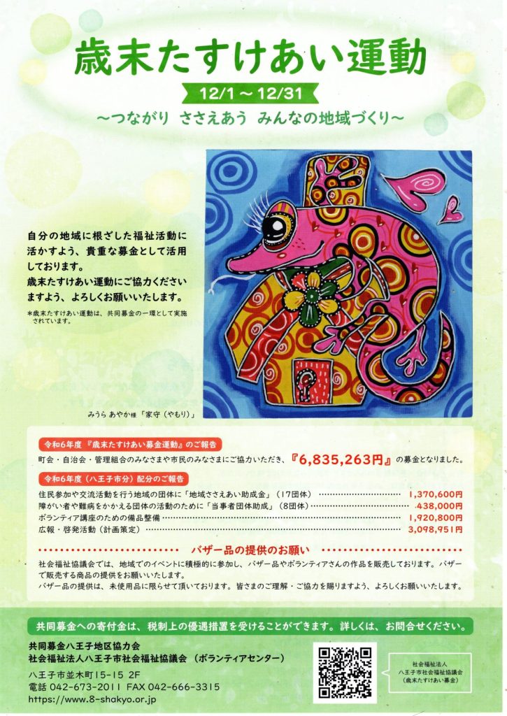 12/1~131 歳末たすけあい運動のお知らせ(八王子市社会福祉協議会) 2025 10/05 お知らせ 回覧 2025年10月5日 お知らせ 回覧 よかったらシェアしてね! URLをコピーしました! URLをコピーしました! 八王子防火防災協会からのお知らせ(八王子防火防災協会) 10/1~12/31 赤い羽根共同募金運動のお知らせ(八王子市社会福祉協議会) 関連記事 4/18(土)19:00~ 定期総会開催のお知らせ(南大沢町会) 2026年4月12日 七頭舞を踊る会 会員募集のお知らせ(七頭舞を踊る会) 2026年4月12日 【注意喚起!!】侵入盗(空き巣)事件が発生しています(南大沢町会) 2026年4月5日 民生委員・児童委員が訪問調査を実施します(八王子市) 2026年4月5日 [報告]柚子の実会×おひさま広場コラボイベント『じいじばあばと昔あそび』を開催(南大沢町会) 2026年4月3日 3/28(土) 10:00~16:00 [観覧歓迎]銭湯絵師・中島盛夫さんと一緒に富士山を描こう!(joynみなみおおさわ、学生団体Bloomy)※実施レポート追記(4/3) 2026年3月27日 三井アウトレットパーク南大沢B街区建替え工事予定のお知らせ(三井不動産株式会社) 2026年3月26日 [町会員情報]令和8年度 会館利用スケジュールを掲載しました。(南大沢町会) 2026年3月26日