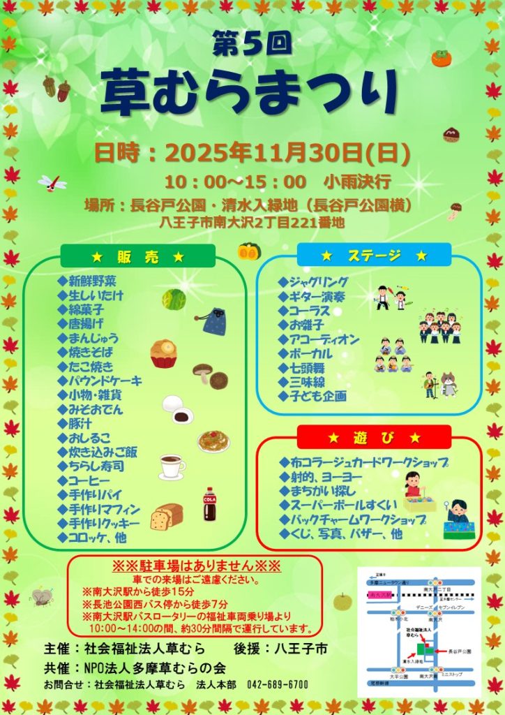 11月30日(日)10:00~15:00(雨天決行) 長谷戸公園・清水入緑地(長谷戸公園横)にて「第5回 草むらまつり」が開催されます。