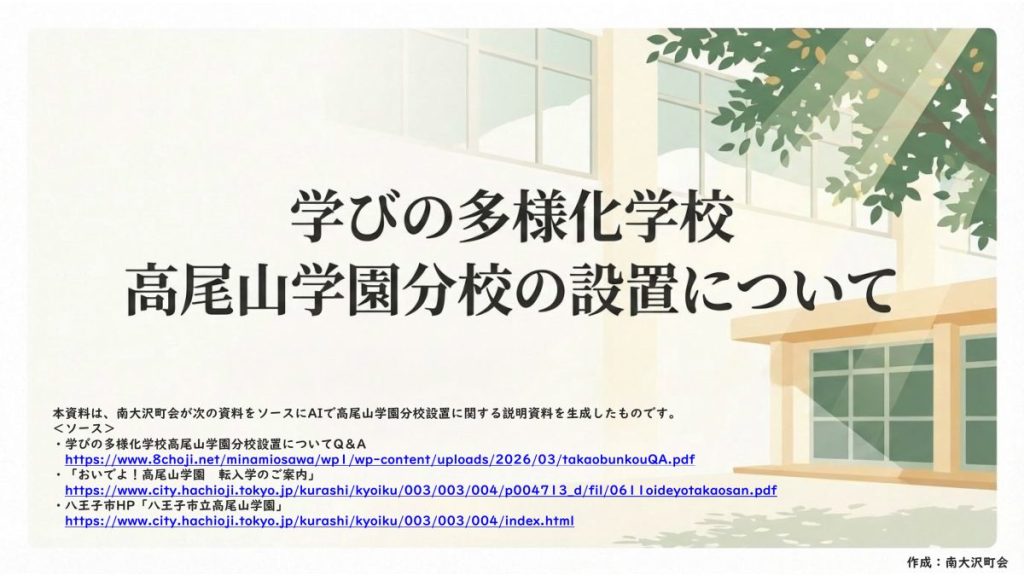 ・学びの多様化学校高尾山学園分校設置についてQ&A(八王子市教育委員会)