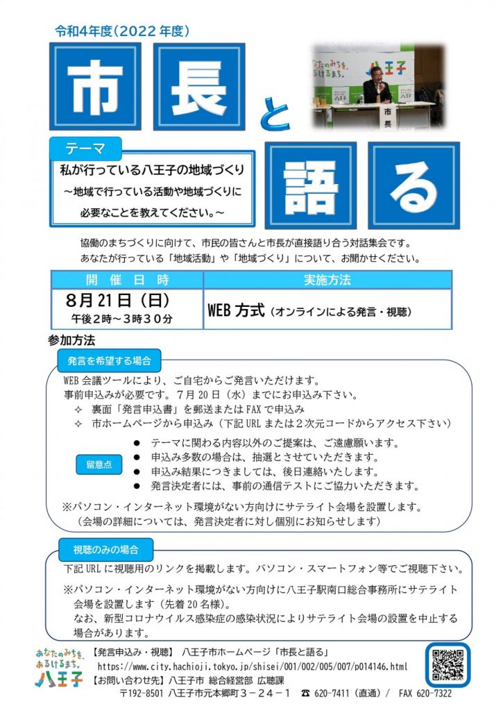 8/21(日) 市長と語る「私が行っている八王子の地域づくり」ご案内