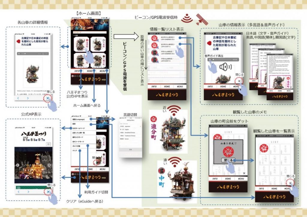 令和4年度 八王子まつりは中止となりました。詳しくは、八王子まつり公式サイトをご覧ください。 AppStore/GooglePlayを表示 八王子まつりに参加する山車情報をスマホで聴くことのできる無料の多言語音声ガイド(eGuideアプリ)です。八王子まつりの会場... -