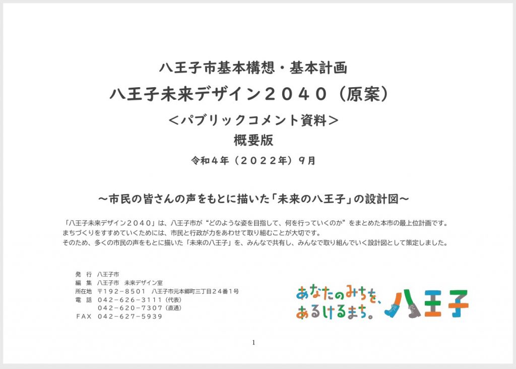 「八王子未来デザイン2040(原案)」意見(パブリックコメント)募集