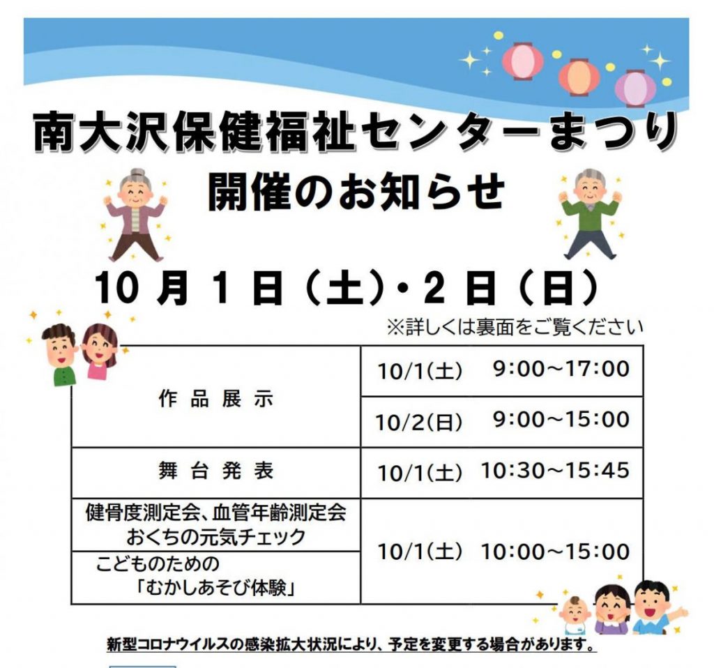 10/1,2 「南大沢保健福祉センターまつり」のご案内