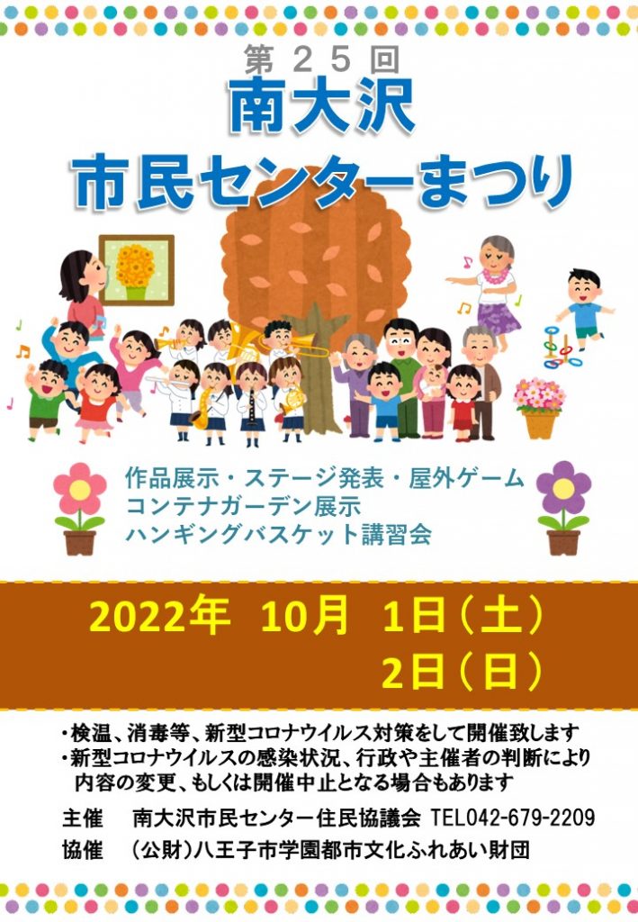 10/1,2 第25回南大沢市民センターまつりのご案内