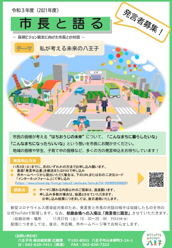 発言者の募集締切は、2021年11月2日(火)までです。詳細は八王子市のホームページをご覧ください。 八王子市のHPを見る -