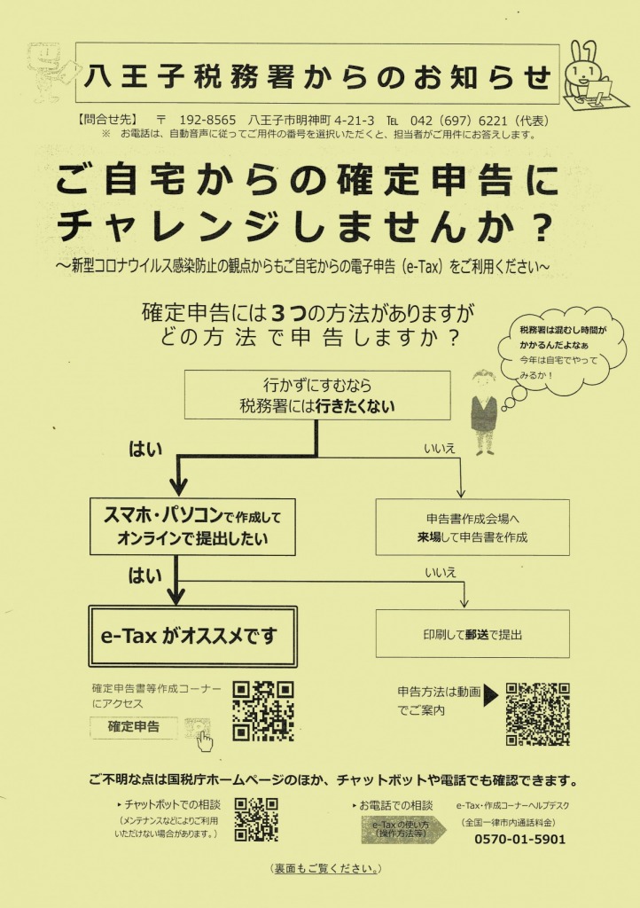ご自宅からの確定申告にチャレンジしませんか?(八王子税務署からのお知らせ)