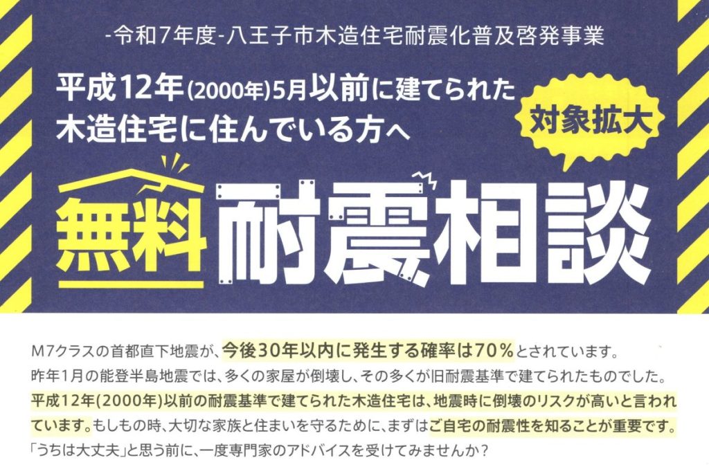 [無料]耐震相談のご案内(八王子市まちなみ整備部)