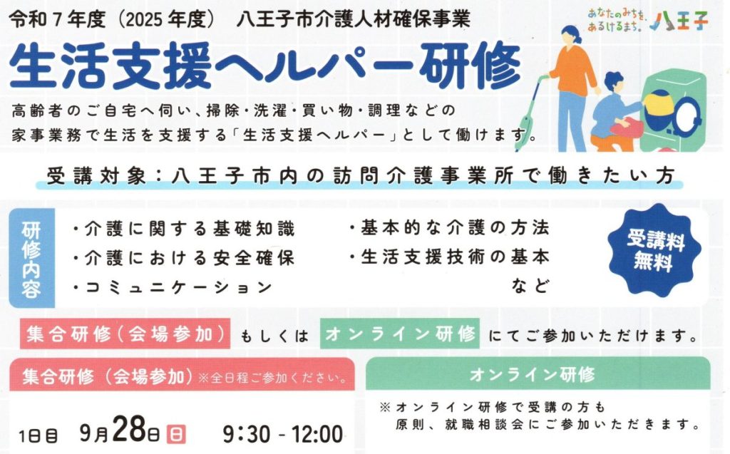生活支援ヘルパー研修のご案内(八王子市福祉部介護保険課)