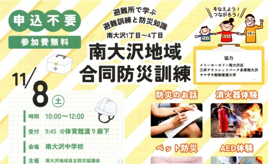 11/8 合同防災訓練のご案内(南大沢地域自主防災協議会)