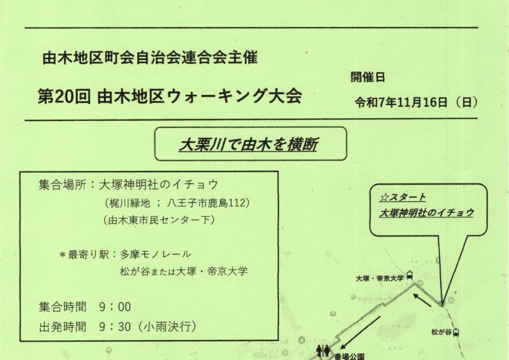 11/16 第20回 由木地区ウォーキング大会のお知らせ(由木地区町会自治会連合会)