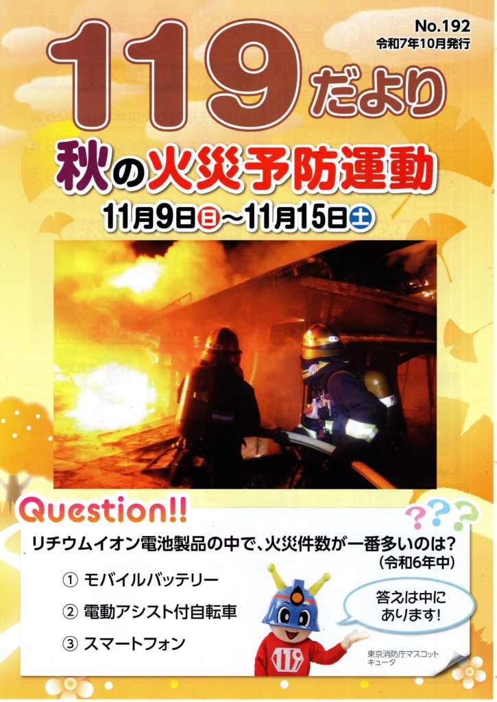 199だより 11/9~15 秋の火災予防運動 No.192(八王子消防署)