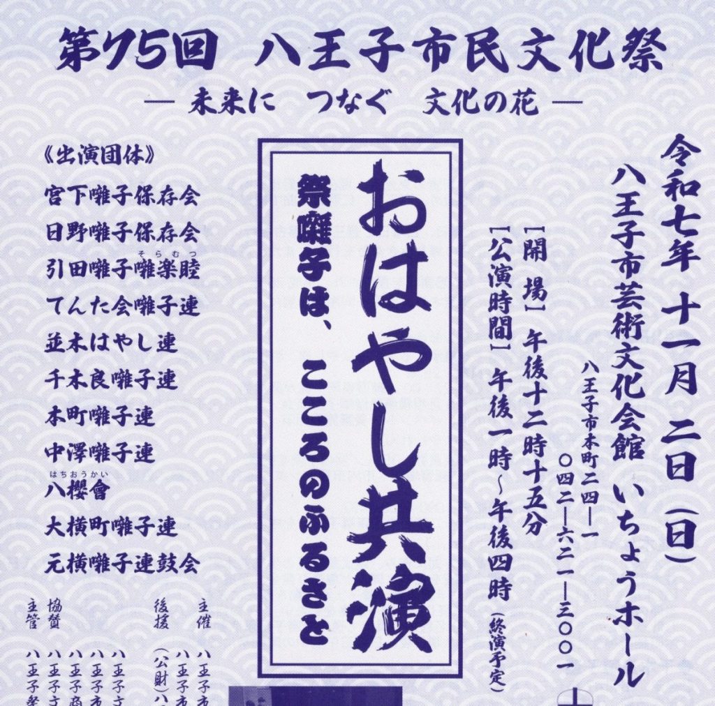 11/2(日) 第75回 八王子市民文化祭~おはやし共演(八王子祭囃子連合会)