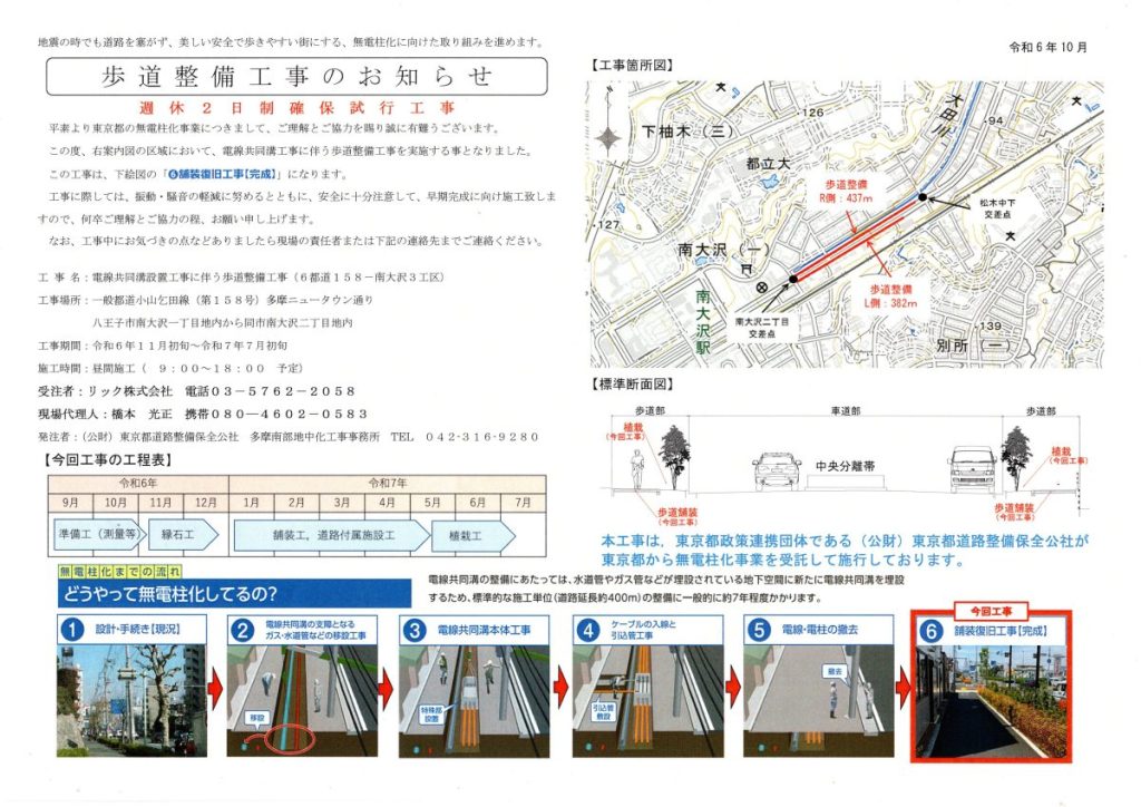歩道整備工事のお知らせ(南大沢二丁目~松木中下交差点)(東京都)
