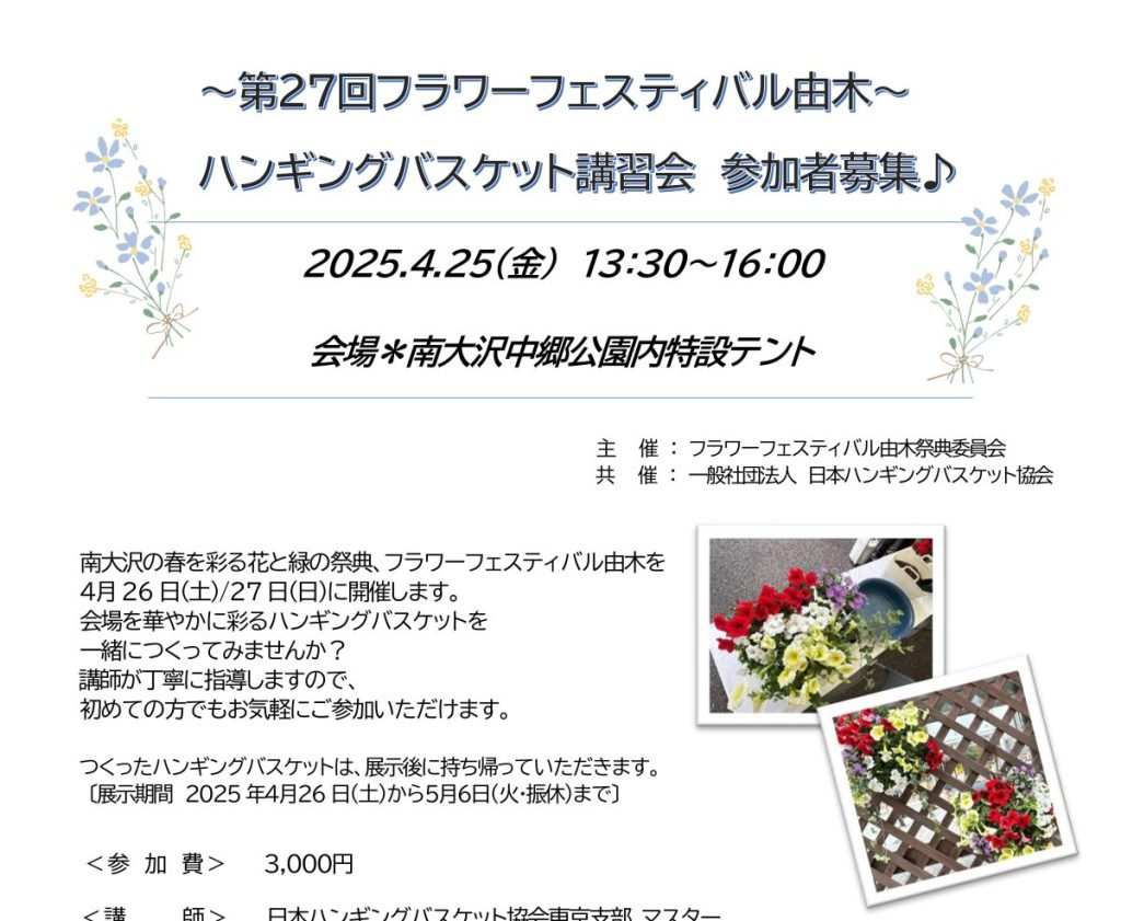 第27回フラワーフェスティバル由木 ハンギングバスケット講習会 参加者募集(フラワーフェスティバル由木祭典委員会)