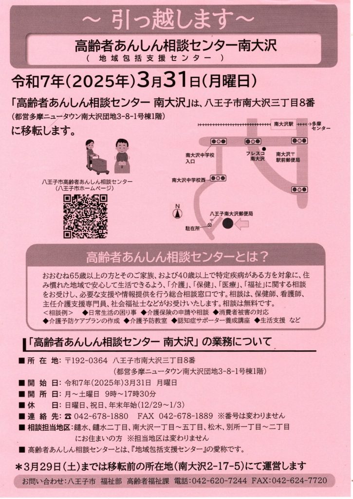 高齢者あんしん相談センター南大沢 引っ越しのご案内(高齢者あんしん相談センター南大沢)