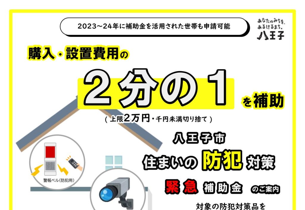 住まいの防犯対策 緊急補助金のご案内(八王子市)