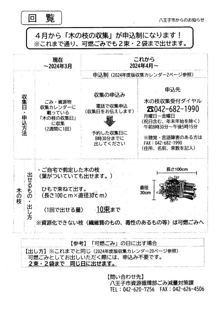 4月から「木の枝の収集」が申込制になります!(八王子市資源循環部ごみ減量対策課)