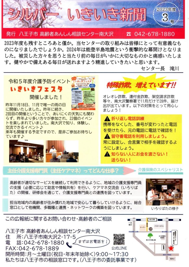 シルバー いきいき新聞 2023年度3号(八王子市高齢者あんしん相談センター南大沢)