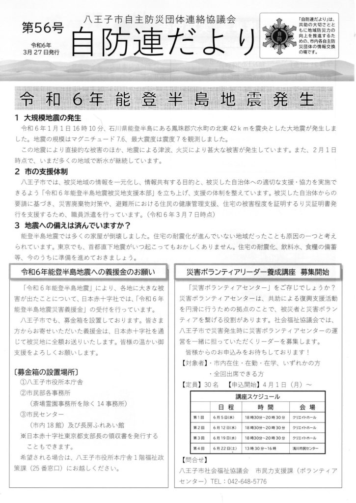 自防連だより 第56号(八王子市自主防災団体連絡協議会)
