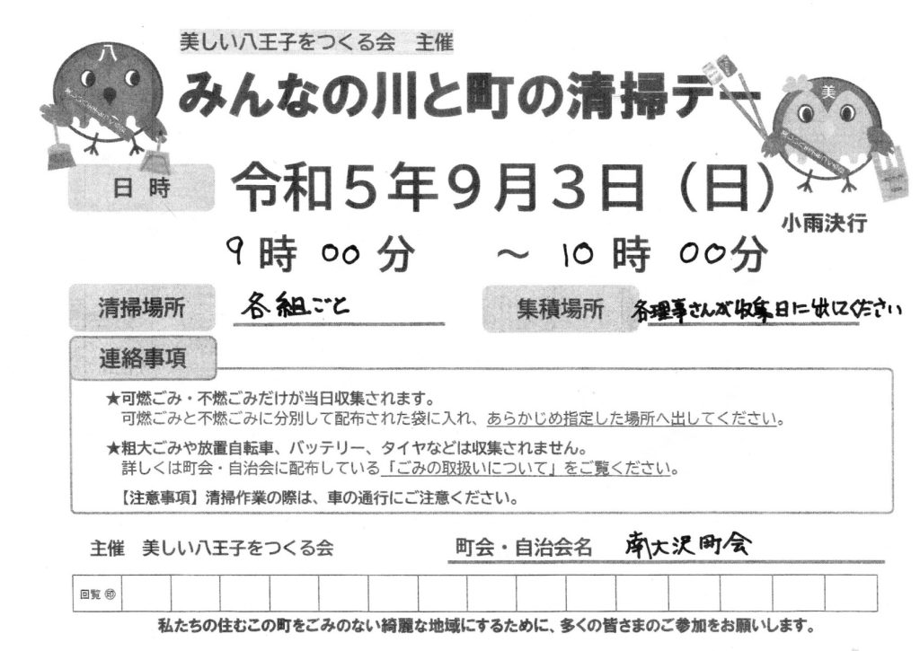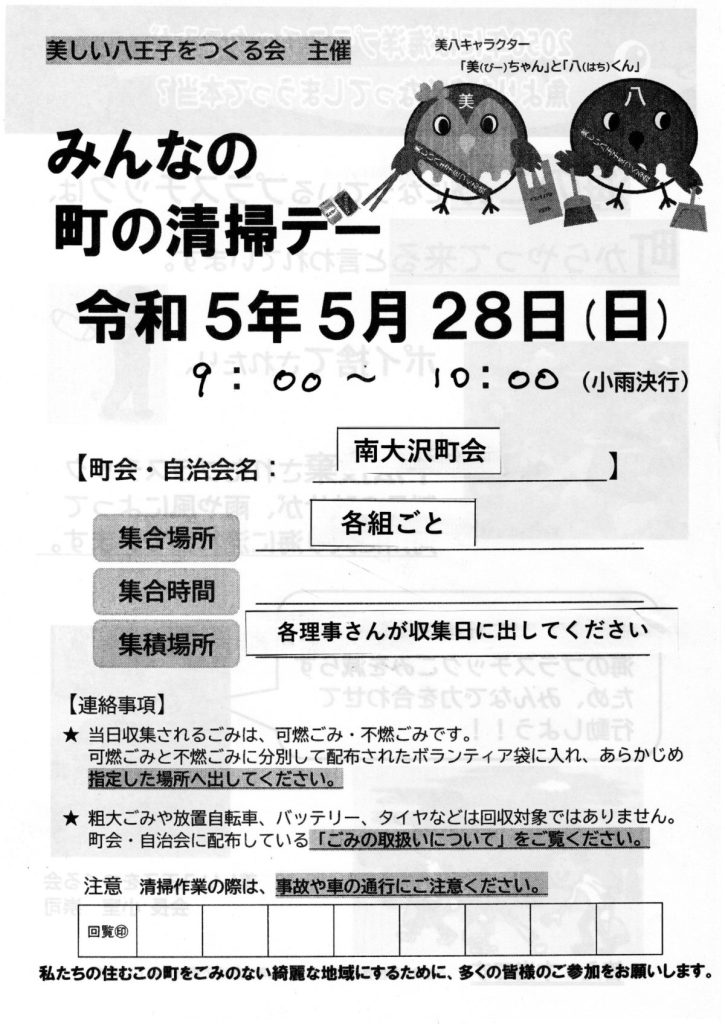 5/28 9:00~10:00 みんなの町の清掃デー(美しい八王子をつくる会)