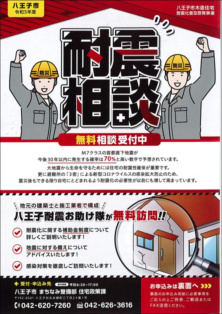 耐震相談 無料相談のご案内(八王子市まちなみ整備部住宅政策課)