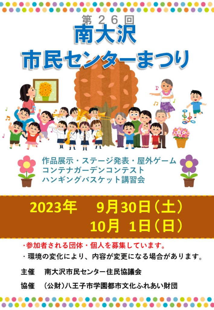 9/30,10/1 南大沢市民センターまつり(南大沢市民センター住民協議会)