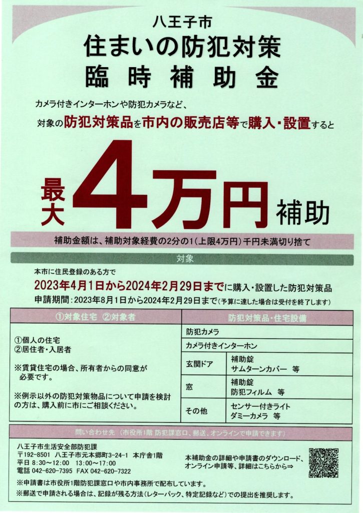 ~2024/2/29 住まいの防犯対策臨時補助金のご案内(八王子市)