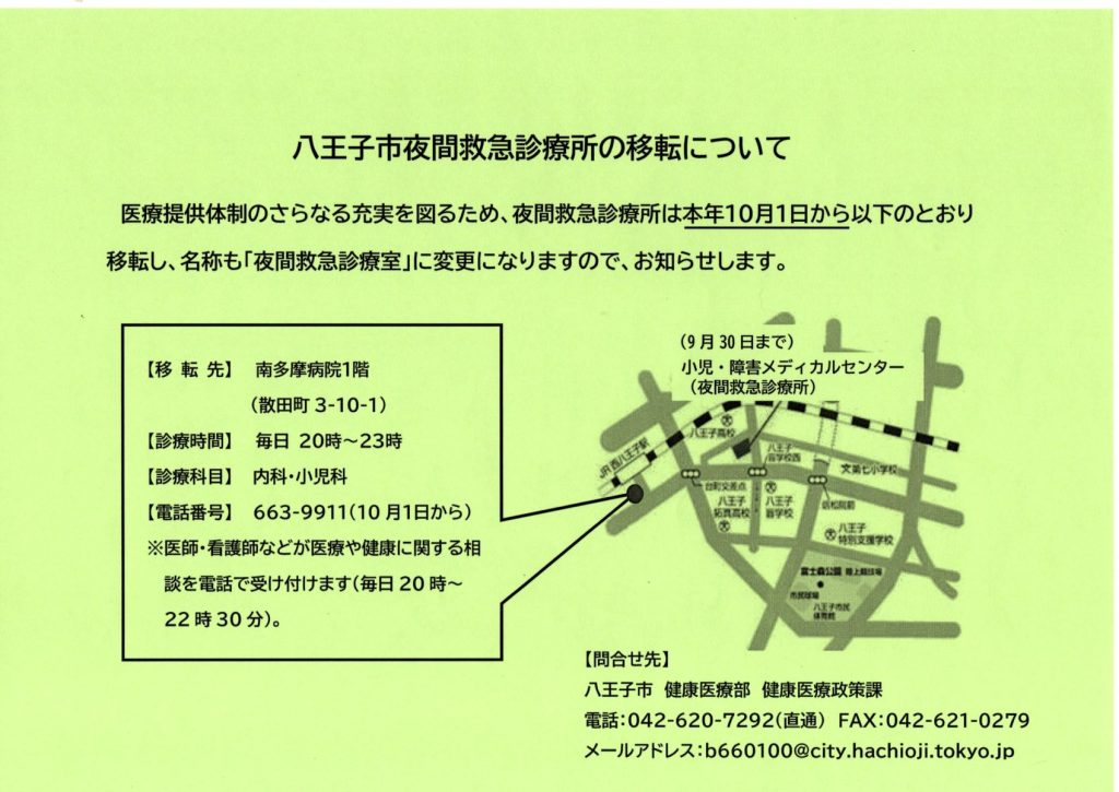 八王子市夜間救急診療所の移転について(八王子市健康医療部)