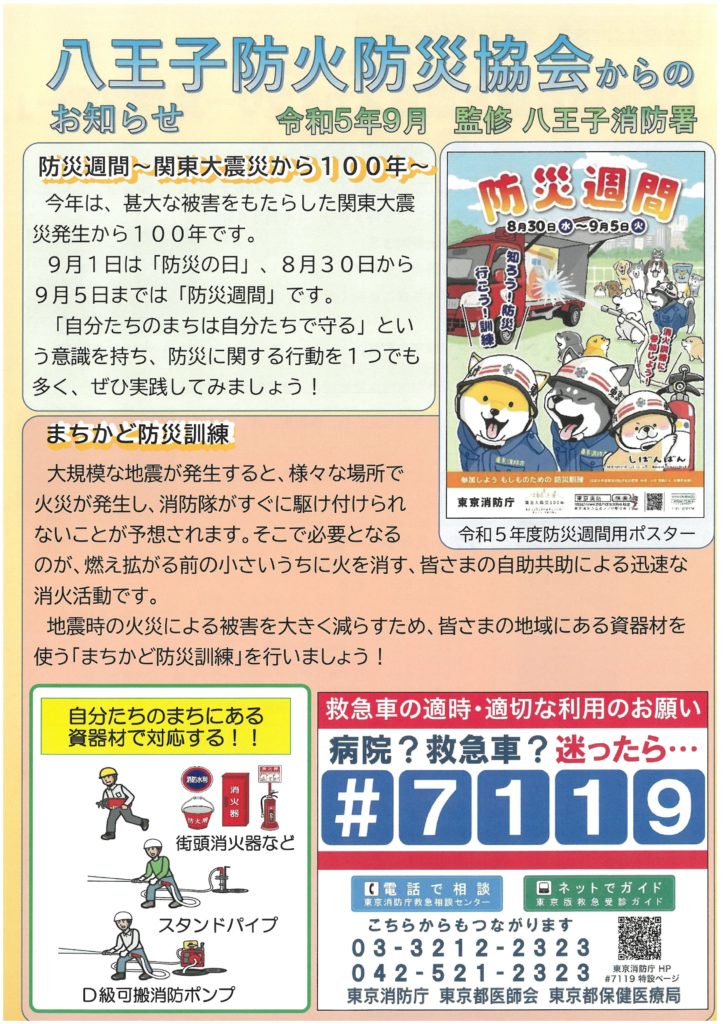 八王子防火防災協会からのお知らせ 令和5年9月(八王子防火防災協会)
