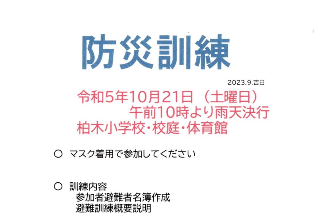 2022/10/21 防災訓練@柏木小のご案内(南大沢地域自主防災協議会)