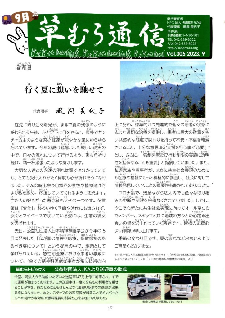 草むら通信 Vol.305 2023.9号(社会福祉法人草むら)