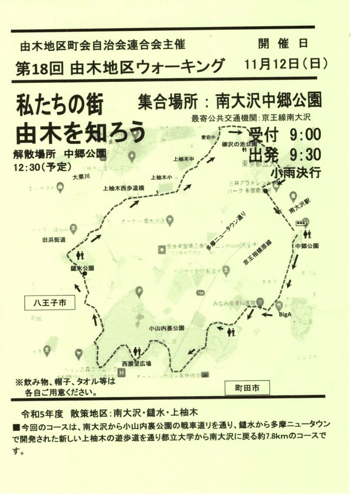 11/12(日) 第18回 由木地区ウォーキング(由木地区町会自治会連合会)