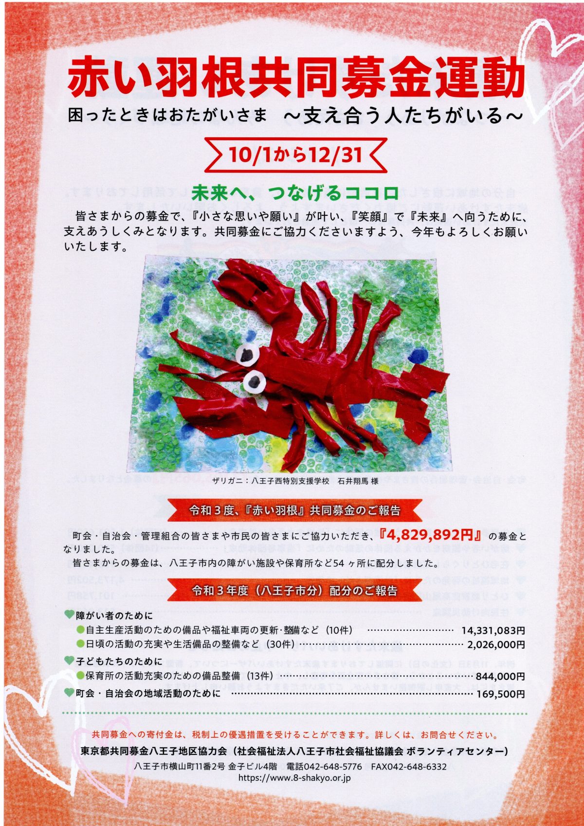 • 10/1~12/31 赤い羽根共同募金運動のお知らせ(八王子市社会福祉協議会)